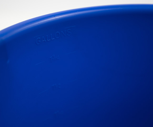 Safety and hygiene are top priorities when handling potentially cleaning janitorial substances. Use shatter-resistant buckets to transfer ingredients, liquids, or cleaning chemicals safely. This 2 3/8 US gallon / 9-litre bucket is made of blue shatter-resistant polypropylene. It has internal litre and US gallon measurements and is ideal for normal janitorial duties.
