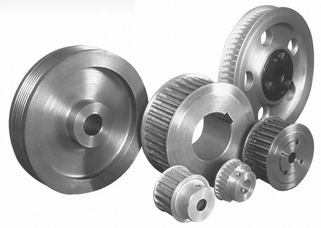 A timing belt pulley with a hub and flange is a mechanical component used in machinery to transmit power from the motor to the driven equipment through a timing belt. The pulley consists of a central hub and a raised section, or flange, that guides the timing belt.