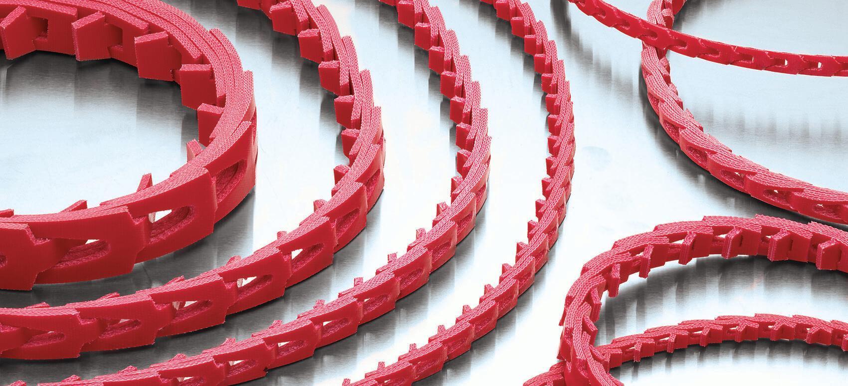 - High-performance polyester/polyurethane composite technology with an equivalent horsepower rating as conventional rubber V-belts.